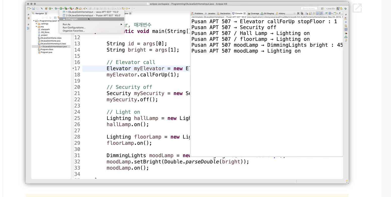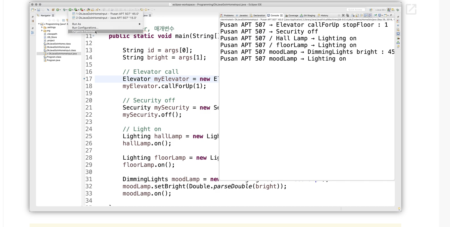이때 프로그램에서 입력받는 값을 args[i] 가 되어야 함 (public static void main(String[] args)에 기반한 값이기 때문)